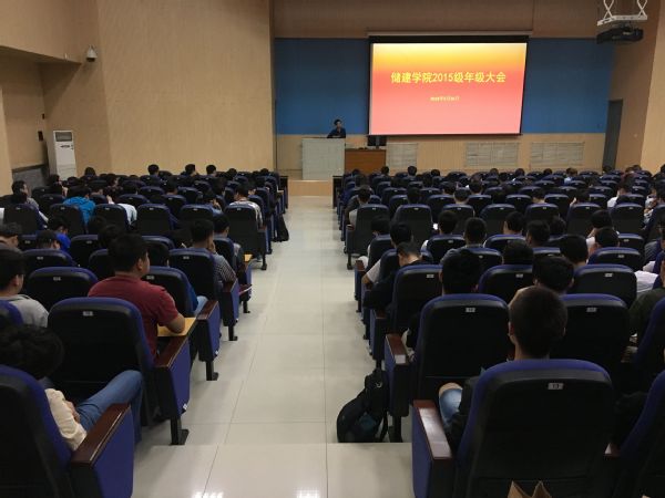 5月26日,储建学院2015级在南教100号召开安全教育专题年级大会,辅导员周辉、郑健及全年级同学参加年级大会。