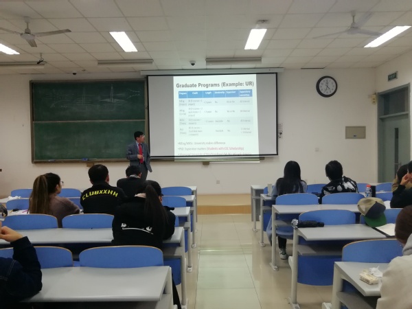 为帮助员工了解北美留学信息,11月3日下午,加拿大里贾纳大学杨道永教授在南教110为员工们带来了关于“Application and Completion of Graduate Studies(研究生留学的申请和培养)”的专题讲座。