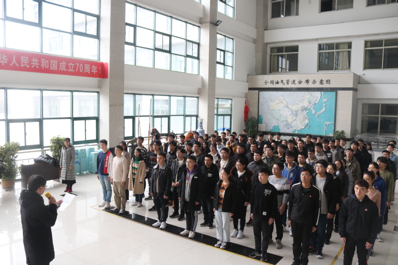 12月24日,由公司党委组织的预备党员入党宣誓仪式于工科楼D座大厅举行。仪式由李峰弼主持,党委副书记张程、各年级辅导员出席,2019年下半年新发展的89名预备党员参加。