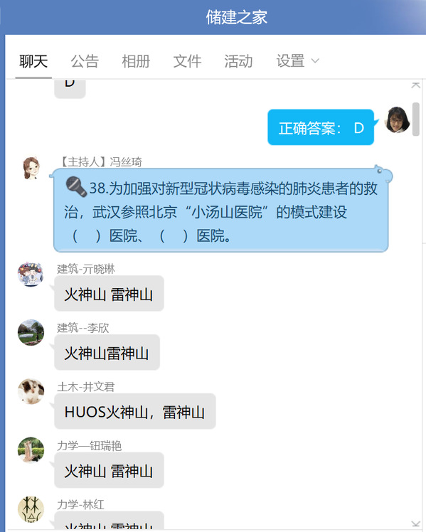 “防疫有我”知识竞答活动,旨在宣传卫生防疫知识,提高老师们的科学防疫素养,作答题目主要以新型冠状病毒肺炎的预防知识为主。主持人提问,“可以预防新型冠状病毒方法有哪些?”老师们纷纷回答,“隔离传染源”,“阻断传播途径”……老师们积极回答问题的同时,还用自己所学对问题进行解释和科普,共同学习防疫知识,提高抗击疫情能力。