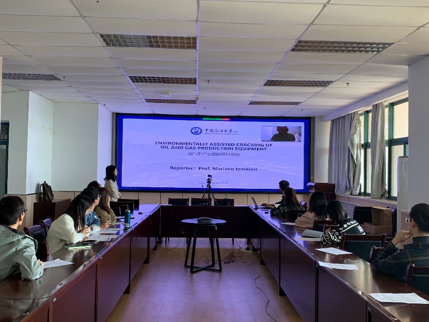 Mariano Iannuzzi教授指出,氢脆通常表现为应力作用下的延迟断裂现象,曾经出现过汽车弹簧、垫圈、螺钉、片簧等镀锌件,在装配之后数小时内陆续发生断裂的现象,断裂比例达40%~50%,因而氢脆对油气设备的影响是不可忽视的。在本次讲座中,Mariano 教授展示了大量的案例并与同学们进行讨论,其中提到钢材和抗腐蚀合金的环境致裂(EAC)对于油气设备是一个严重的威胁。尽管我们对环境致裂的基本原理的认识会很快成熟起来,但是压力腐蚀断裂和氢脆现象对油气生产设备的影响仍需引起重视。