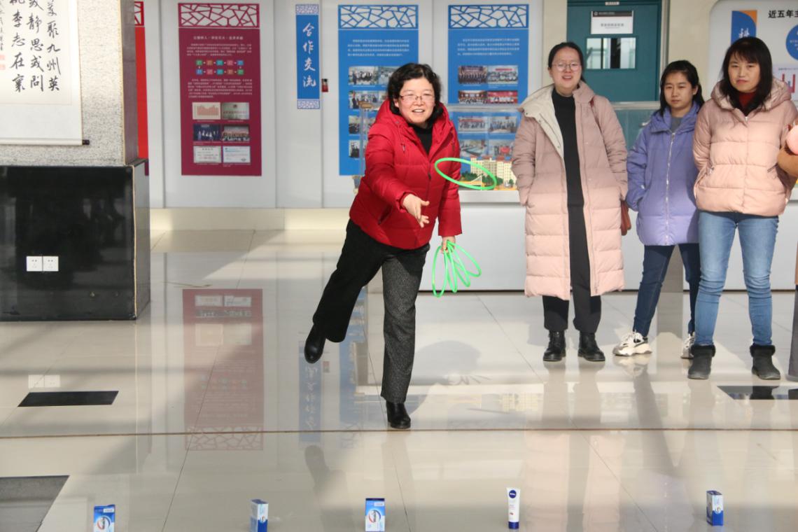 本次趣味体育活动开展了套圈游戏、跳绳、转呼啦圈、投飞镖等各项活动,老师们欢声笑语、好不热闹。尤其套圈游戏成了老师们的最爱,参加活动的老师铆足精神,各显身手,站在标准线外,集中注意力,紧盯自己心仪的目标,将套圈从手中轻轻滑出,向着场地上的目标轻盈地飞去。套中目标的老师开心雀跃,赢得围观老师们的阵阵欢呼,没套中的老师也绝不气馁,有身边的姐妹们出谋划策、加油助威。学院不少男教师也前来围观喝彩,为女老师们送上了节日的祝福。欢快的气氛、精彩的场面,让老师们度过了一个欢乐、愉悦的“三八”妇女节。