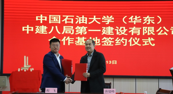 座谈会上,与会人员共同观看中建八局和中国石油大学的宣传片,了解双方的基本情况;高平发、宫哲分别从发展历程、现状、目标和人才培养等方面介绍了本单位的成绩、措施与特色;中建八局一公司青岛公司项目经理、土木系毕业生陈公信发言回顾了求学、工作经历与体会。中建八局一公司青岛公司总工程师程飞、储建学院副经理唐建峰代表双方,签署合作协议并为人才培养基地揭牌;宫哲、高平发为党建联建共建揭牌。