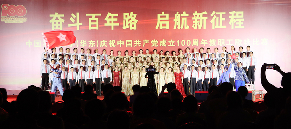 为庆祝中国共产党成立100周年,弘扬伟大的爱国主义精神,展现全校教职工蓬勃向上的精神风貌,6月17日晚,学校“奋斗百年路 启航新征程”庆祝中国共产党成立100周年教职工歌咏比赛在青岛校区体育馆隆重举行。VKGAME威客电竞荣获一等奖。