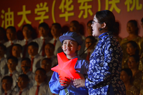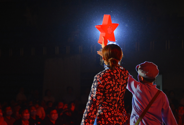 “红星闪闪放光彩,红星灿灿暖胸怀,跟着毛主席跟着党,闪闪的红星传万代......”储建学院此次的参赛曲目是《闪闪的红星》,歌曲选用同名电影中的《红星歌》《映山红》《红星照我去战斗》三首歌曲串烧而成。学院115名参赛者精神抖擞、歌声嘹亮,饱含深情地用歌声讲述着家喻户晓的少年英雄潘冬子的红色经典故事,生动地展现了潘冬子在党和前辈的教育、帮助下,逐渐成长为一个真正的红军战士的过程。同时,利用舞台剧表演的形式更加形象地表现了少年英雄潘冬子的成长历程。“竹排流水唱革命,红星永远照我心”,学院教职工用歌声深情地表达了对党和祖国的热爱与祝福。