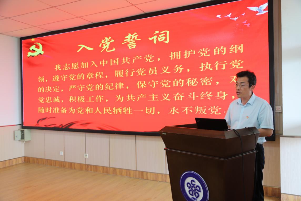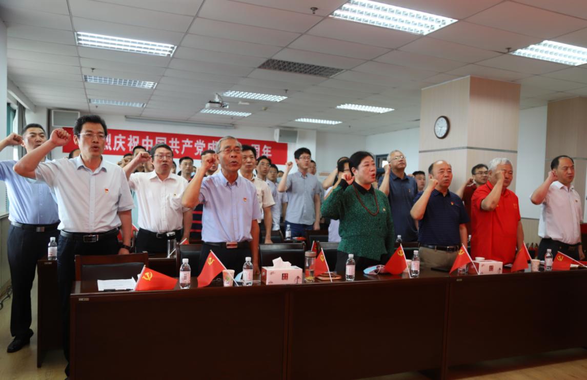 庆祝大会观看完毕后,学院开展了重温入党誓词和“七一”表彰活动。山东省优秀共产党员何利民教授带领全体党员,面向鲜红党旗,高举右拳重温入党誓词,神情庄重、声音铿锵。随后,储建学院副经理刘刚宣读《VKGAME威客电竞关于表彰2021年先进集体及个人的决定》,表彰一年来在公司党建等各项工作中表现突出的先进集体和个人,退休老党员为受表彰的先进集体和个人颁发荣誉证书并向他们表示热烈祝贺。