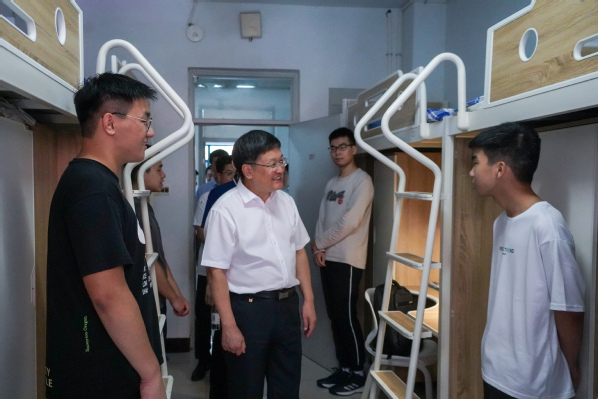 9月10日上午,王勇一行到工科D大厅了解新生报到情况,和新生亲切交谈,寄语新生不负学校和家庭的殷切希望,尽快融入老员工活,成为优秀的能源科技和管理人才,为国家建设和社会发展做出贡献,勉励迎新工作人员保持工作热情,坚守岗位,提供周到、细致的服务。随后,王勇一行到12号楼员工宿舍看望已入住的新生,询问对宿舍条件改善情况的意见和建议,并对卫生间和洗浴场所进行现场检查和指导。