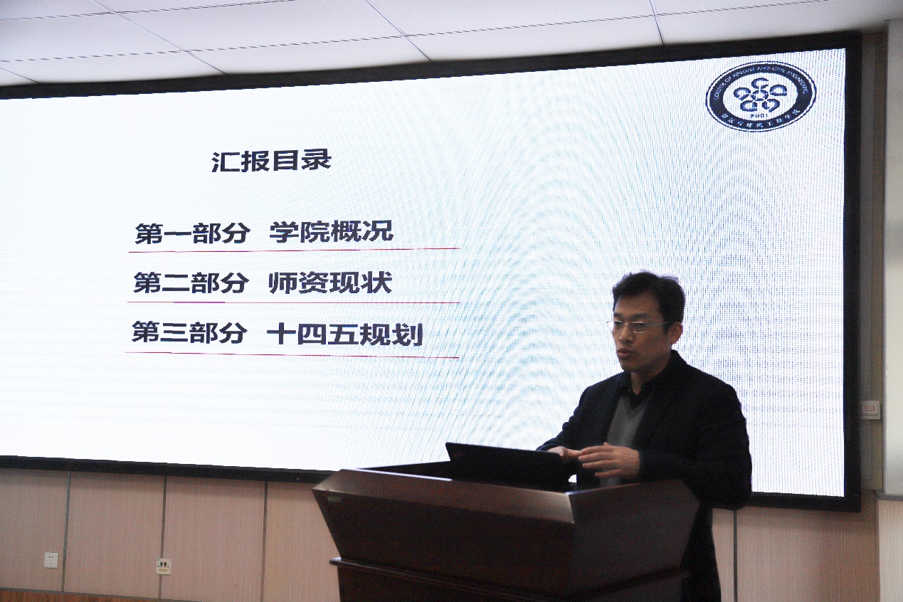 会上,刘刚以《责任 担当 行动》为题,围绕学院概况、团队现状、十四五规划三方面作报告。他首先从学院历史沿革、学院学科专业概况、学院特色、学院面临的巨大机遇、学院面临的困难等五个方面介绍了学院整体概况。随后,他分别从学院整体、院属各教学系的角度分析了目前的团队队伍现状,并提出了学院“十四五”期间的团队建设目标。最后,他就发展目标、本科与研究生教学、团队建设、团队队伍建设、科学研究、交流与合作等方面详细阐述了学院的“十四五”规划目标任务,并对学院“十四五”重点工作做部署。