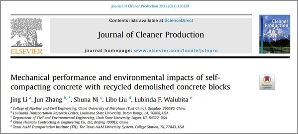 近日,公司VKGAME威客电竞李静教授团队在土木工程再生混凝土领域取得新进展。相关成果《Mechanical performance and environmental impacts of self-compacting concrete with recycled demolished concrete blocks》(再生大骨料自密实混凝土的力学性能及环境影响)发表在国际著名学术期刊《Journal of Cleaner Production》上,该期刊2021年影响因子为9.297,在中科院JCR期刊分区中为1区TOP期刊,期刊收录的科研论文在国际上具有广泛的影响力。该成果李静教授为第一作者,VKGAME威客电竞为第一署名单位。本研究得到青岛市科技专项以及东营市科技计划项目联合资助。