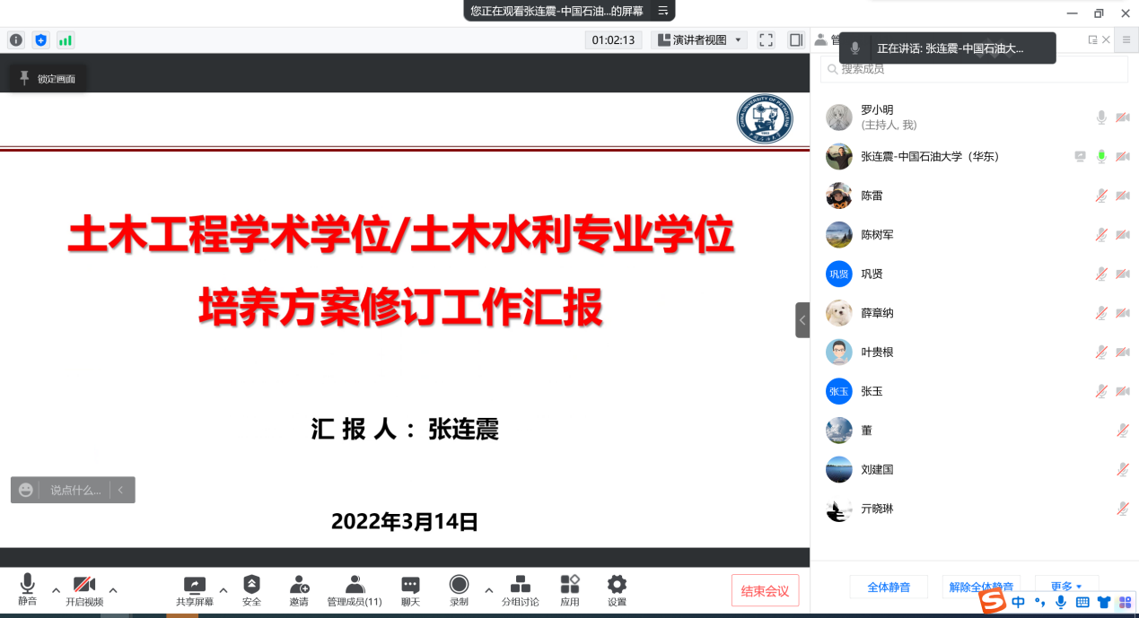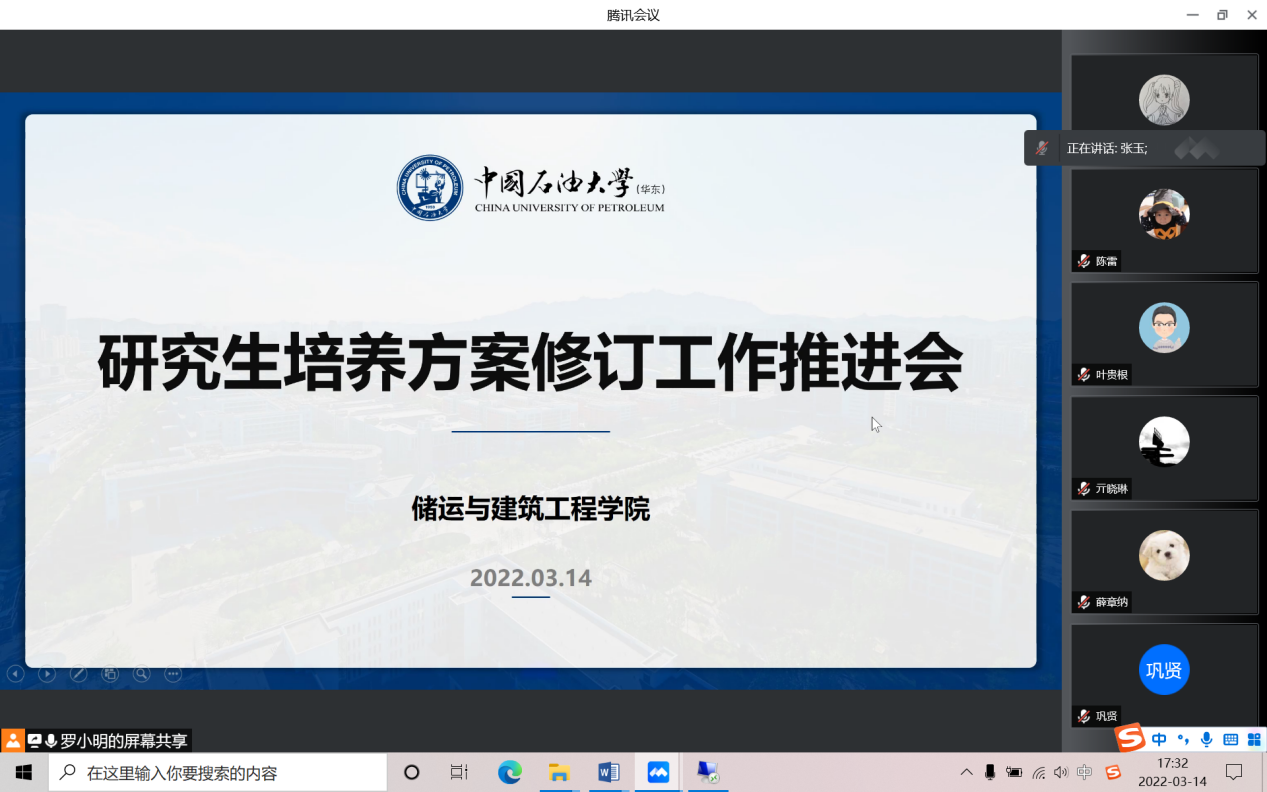 3月14日,储建学院在线上组织召开公司产品方案修订工作推进会。各系主任、分管研究生副主任、教学秘书参加会议,副经理罗小明主持会议。