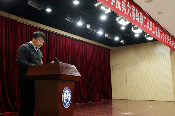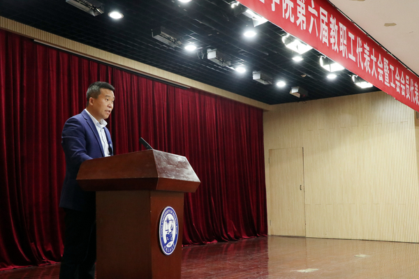公司工会主席冷青峰以《踏实践行新思想,携手奋进新时代,为学院高质量发展凝聚强大力量》为题作第五届工会委员会工作报告。