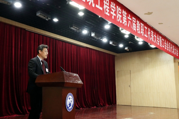 王德钊代表校工会对学院双代会的召开表示祝贺,对学院近几年在团队建设、工会工作等各个方面取得的成绩给予充分肯定和高度评价。