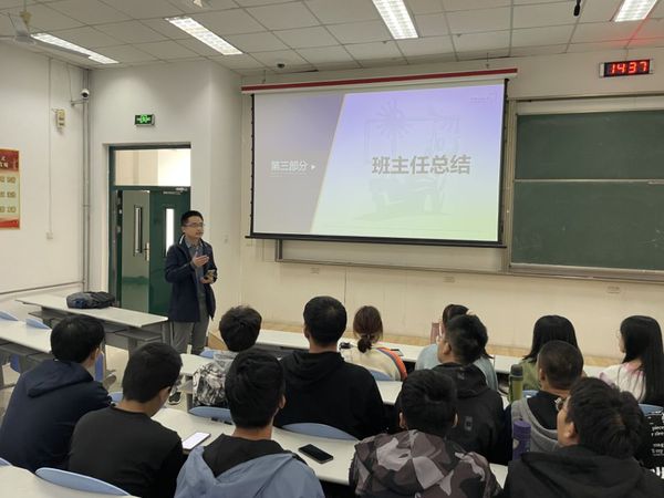 建筑2002班主任杨婷婷在与班级同学交流座谈