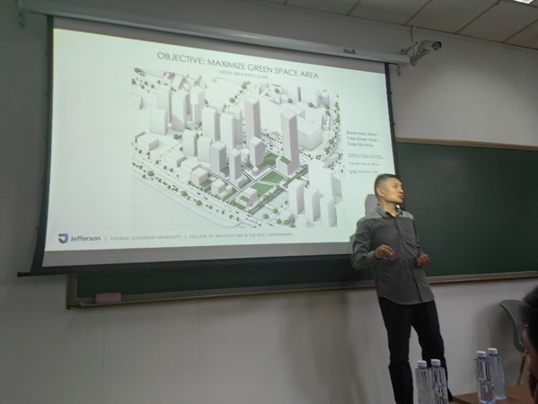 杜鹏博士在报告中梳理了全球高密度城市所面临的挑战,提出了新的城市设计策略。他指出在解决城市的复杂性与跨学科属性时,数据驱动的设计方法显得尤为重要,这种方法能够在短时间内设计出成千上万种城市模型,并从环境、社会和经济因素考量对每个模型做具体的量化分析与性能模拟。报告结合具体案例,介绍了数据驱动的计算性设计方法的基本原理与应用过程,从“城市网络”、“建筑类型”、“环境社会指标”、“分析与互动评价”等方面展示了其在城市设计中的巨大潜力。