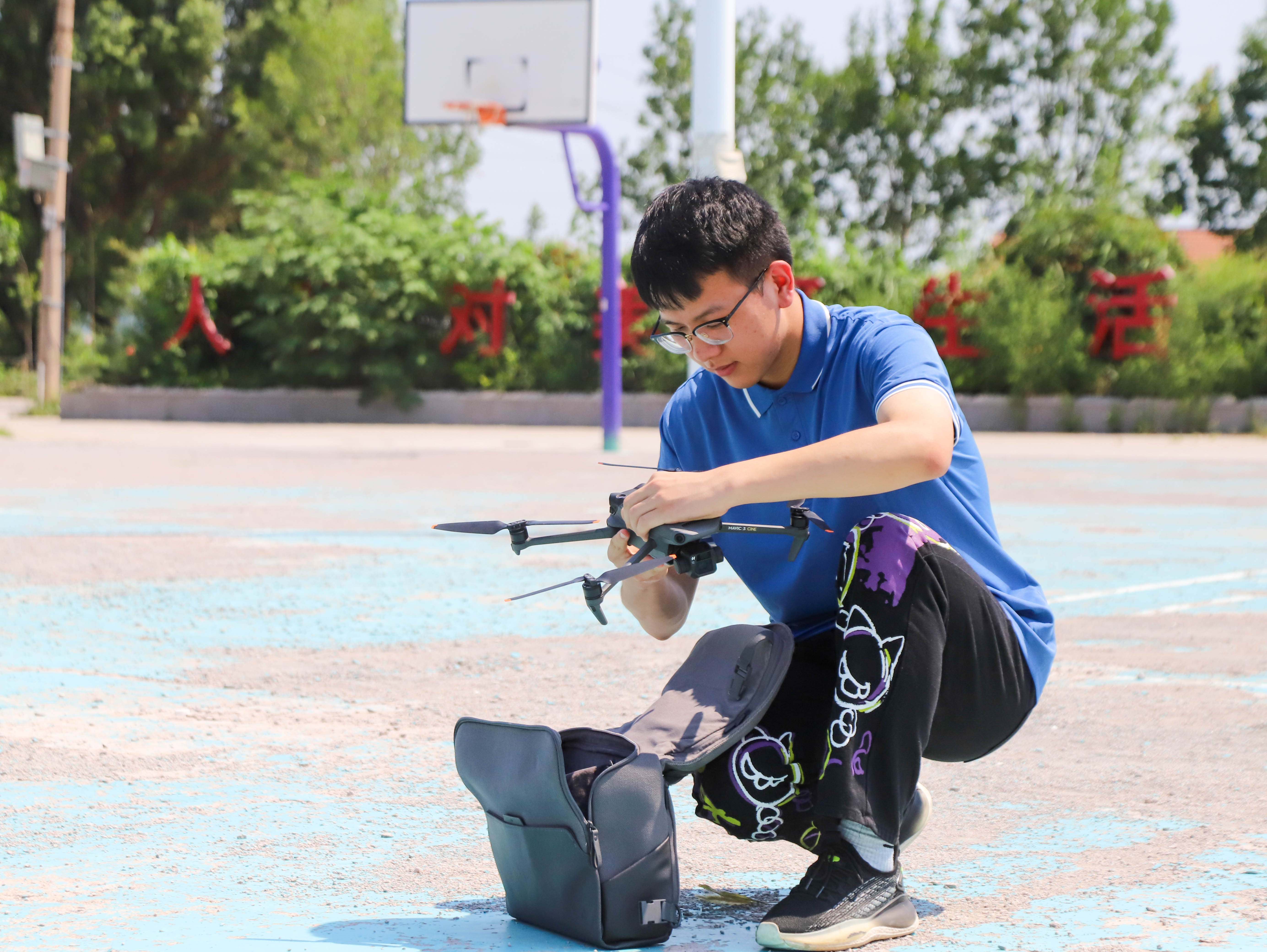 实践队成员调试无人机 段璎航摄