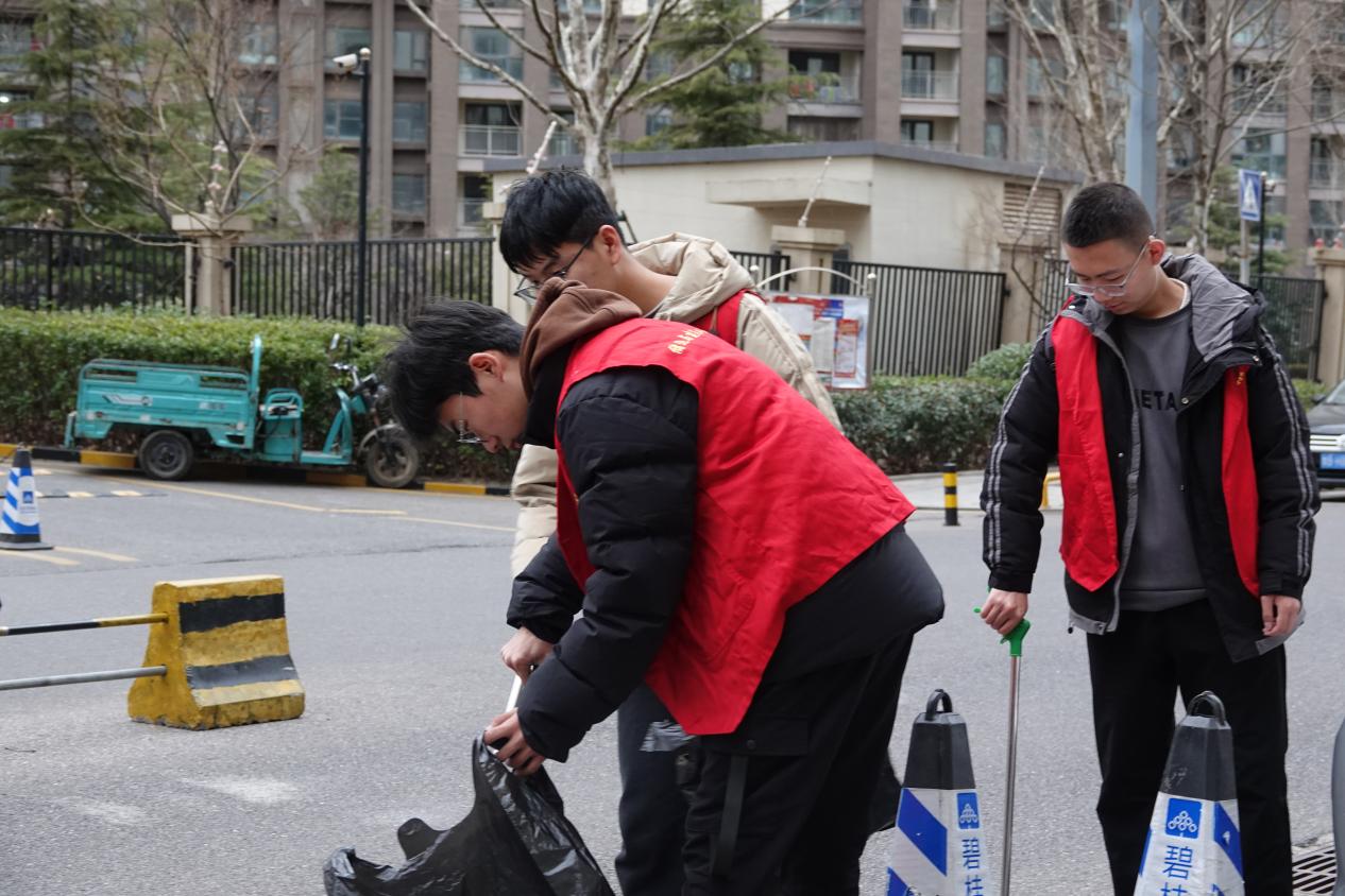 团支部成员在社区开展清洁工作 宋端艺摄