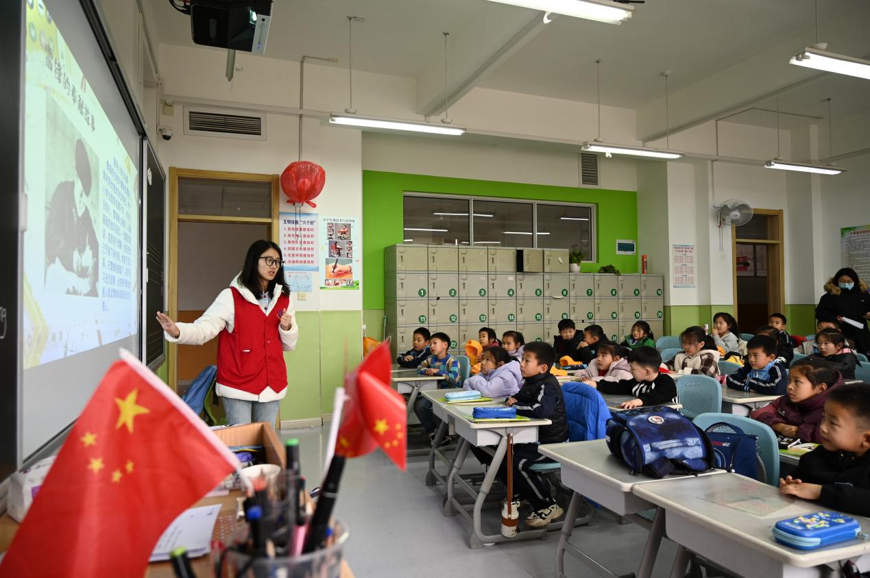 3月7日,学院召旭服务队走进西海岸新区昆仑山路小学101班与103班,开展“学习雷锋精神,勇做时代先锋”主题教育活动。团支部成员王泉灵、彭秋洋讲述雷锋故事,结合校园场景,模拟助人情景帮助员工感受雷锋精神,并设置趣味问答,通过“幸运盲盒”的抽奖形式激发员工回答热情。