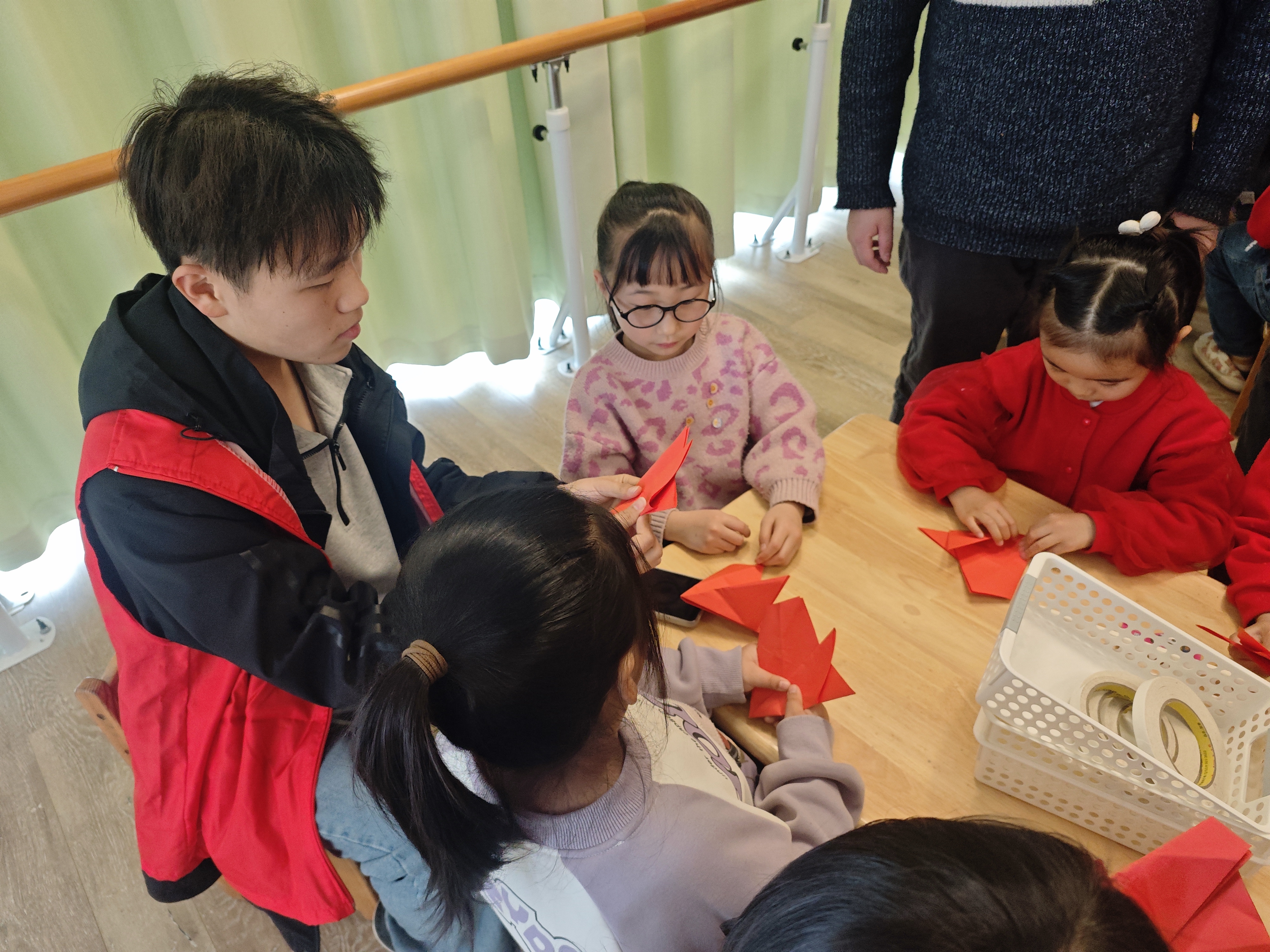 志愿者教小朋友剪纸 赵振婷摄