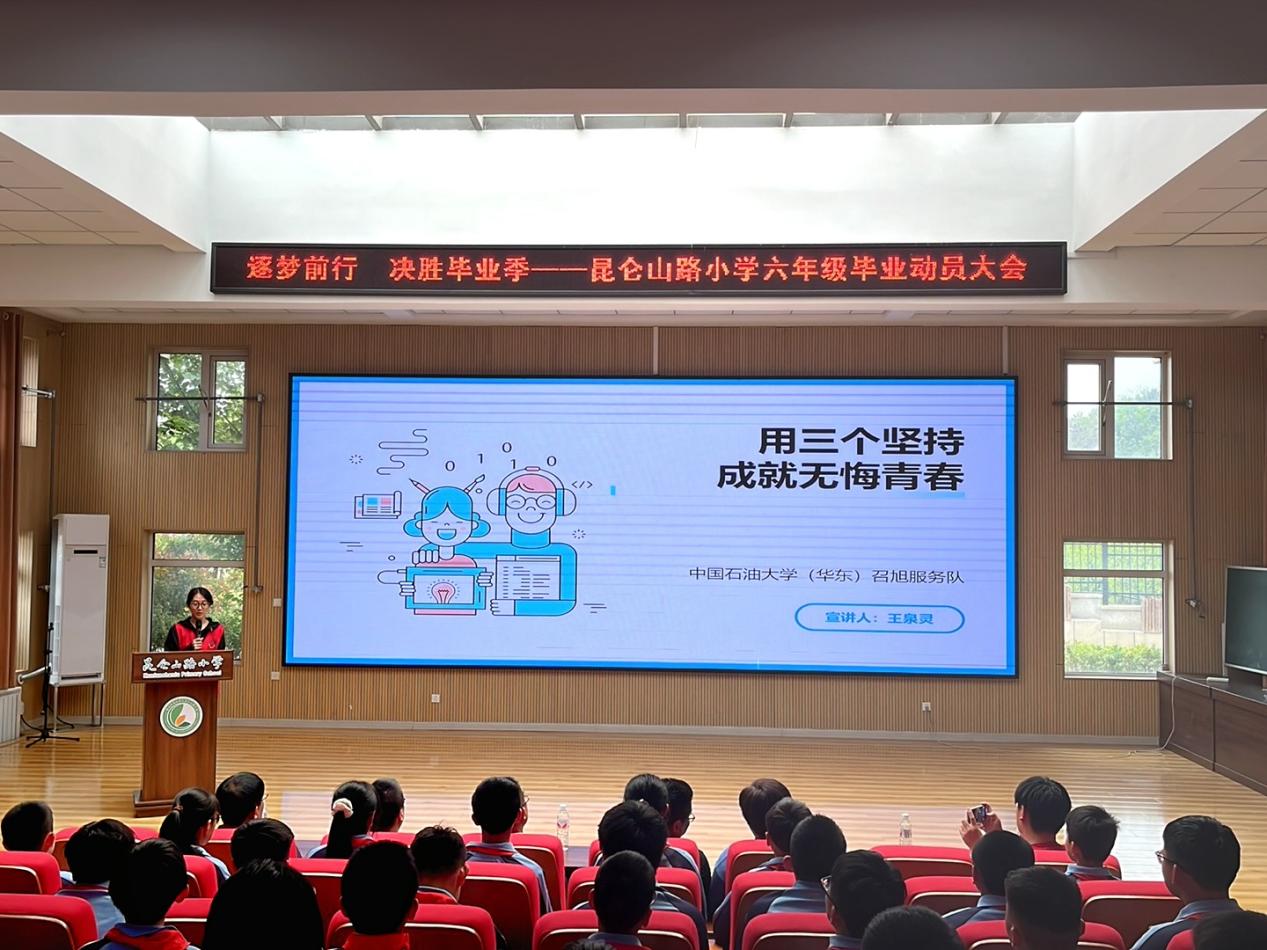 为提振员工的学习精神,巩固服务队与学校的深度合作成果,5月6日下午,召旭服务队在志愿者王泉灵的带领下,走进昆仑山路小学报告厅开展了一场精彩纷呈的学习分享会。此次活动面向近200名来自六年级的员工,学校董事长、家长代表也齐聚一堂,共同见证孩子们成长路上的重要时刻。