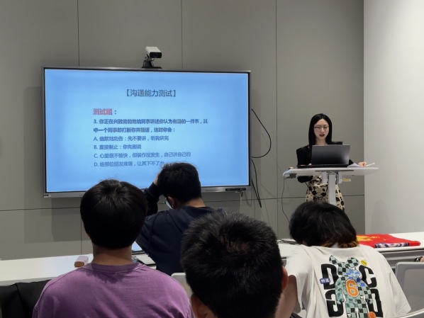 徐雅晴以互动问答的形式,通过“沟通能力趣味测评”引入主题。测评涵盖情景模拟、语言表达和倾听反馈三个维度。测评结果揭晓时,同学们对照个人结果分析自己的沟通风格,并对自身沟通能力有了更清晰的认识。随后,在主题分享环节,徐雅晴运用图表展示、案例分析和互动提问等多种形式,系统讲解了向上沟通的常见场景及应对策略。徐雅晴在“向上沟通前的5项准备”中,详细剖析了上下级沟通的核心要点,最后深入探讨了向上沟通中的细节事项。她通过生动的案例,详细解析了如何选择合适的沟通时机、怎样精准表达诉求、遇到意见分歧时的处理技巧等实际问题,并特别强调了情绪化表达、信息准备不足等常见误区可能带来的负面影响。同学们纷纷表示,这些实用的沟通技巧既提升了个人沟通能力,又为团队协作、小组交流等工作提供了明确指导。