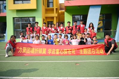 团支部成员与幼儿完成游戏 钦宇帆摄