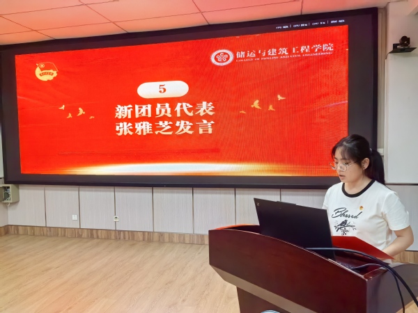 张雅芝同学代表全体新团员发言,承诺将以团员标准严格要求自己,勤奋学习,积极进取,发挥模范带头作用,用实际行动践行入团誓言,不辜负组织的信任和期望。团员代表孔繁玉同学分享了自身在团组织中的成长经历,勉励新团员们珍惜荣誉,勇于担当,在青春的赛道上奋力奔跑。