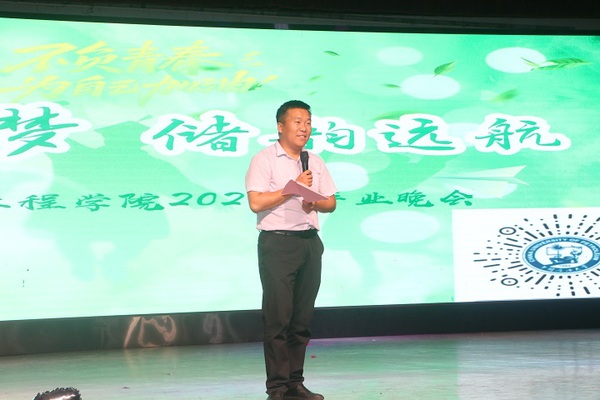 本次毕业晚会特别设置了年级大会的环节,毕业班辅导员王加胜深情回顾了在校四年国家、学校和学院的发展,特别提到了2025届在校期间取得的成绩。面对即将走出校园的毕业生,王加胜寄语他们要懂得感恩:感恩祖国、感恩母校、感恩彼此、感恩自己;希望他们在工作和学习中注意细节:要学会思考、要学会做事。