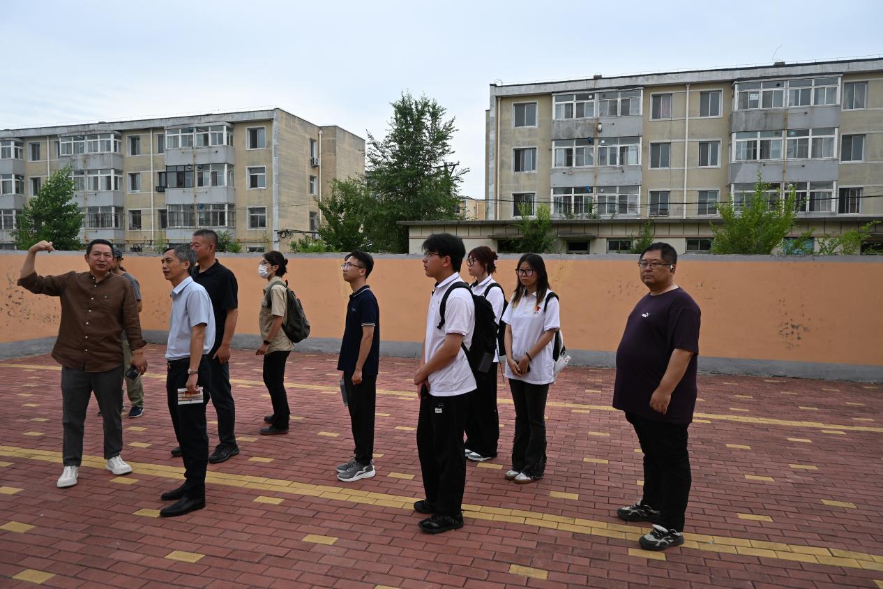 在幸福小区,实践队实地调研工业遗产活化利用路径。姚磊以盘锦市“幸福小区”为典型案例,从规划理念、建筑创新、社区营造三个维度,系统介绍了该小区在功能布局、空间设计、人文关怀等方面的突破性实践,揭示了其在上世纪成为东北地区“宜居标杆”的深层逻辑。姚磊的细致讲解让实践队员深受启发,队员们考虑通过功能置换、景观再造与记忆符号植入,将石油文化基因融入现代生活场景,实现工业记忆与民生幸福的有机统一。