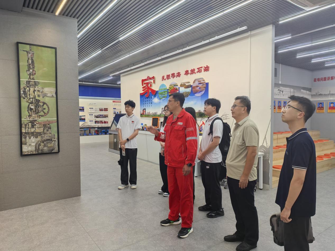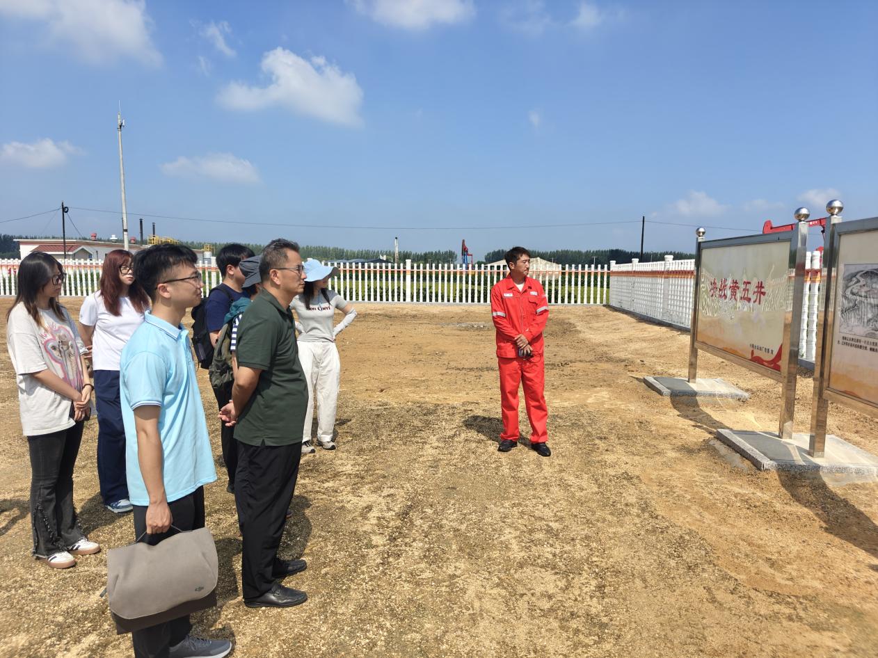 8月7日,在辽河油田相关工作人员的带领下,实践队深入调研了辽一井、黄五井、石油工业遗产基地。通过实地讲解,实践队员系统了解辽河油田从1970年“南大荒”创业起步,到攻克稠油、高凝油、超稠油开发世界级难题的完整历程。据讲解员介绍,辽河油田地质构造复杂,油品类型多样,老一辈石油人以“千把钥匙开千把锁”的恒心与毅力,实现连续千万吨规模稳产,铸就“世界稠油看中国,中国稠油看辽河”的行业标杆,凝练形成“开拓创新、油稠人不愁”的特种油精神。