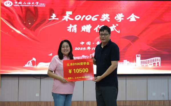 活动中还举行了“土木0106奖学金”捐赠仪式,该奖学金由土木0106班员工共同设立,用于激励土木工程专业在校员工勤奋学习、立志成才。