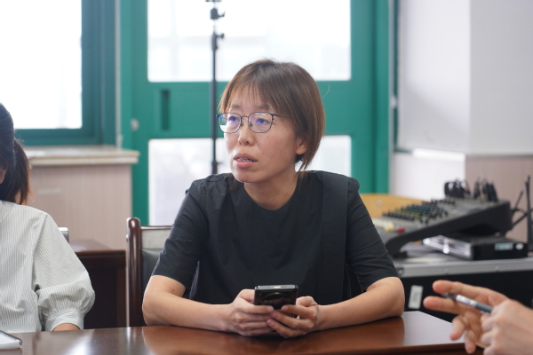 建筑2401班主任王灵芝作工作经验交流。她表示,从专业课教师到班主任,身份虽有不同,但职责相同,班主任工作不仅拉近了与员工的距离,也积累了丰富的育人经验,能有效地反哺教学工作。王灵芝以所带班级员工在 “挑战杯” 山东省老员工课外学术科技作品竞赛中斩获特等奖为例,分享了班主任在员工培养工作中的经验。王灵芝认为应加强专业内各班级之间的协同联动,深化师生交流,精准掌握员工思想动态、学习困惑与发展诉求,才能量身定制切实有效的教育培养方案。