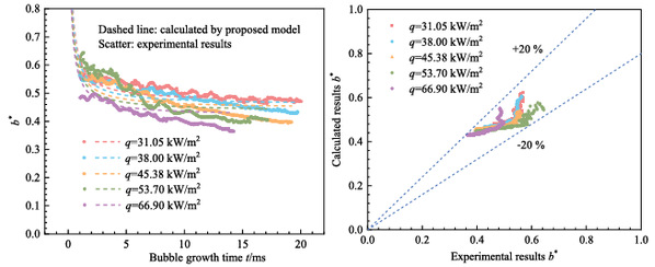 气泡生长对沸腾传热性能具有重要影响,而建立精确的纯制冷剂和非共沸制冷剂气泡生长模型是传热研究的关键。本研究设计了一种可视化实验装置,用于观测池沸腾过程中的气泡生长行为,并揭示了气泡脱离后液态烷烃补充至成核位点的流动机制。实验还表明,液态烷烃的平均气泡停留时间明显短于具有较大表面张力和接触角的液体。气泡脱离后,液态烷烃能快速补充至成核位点,有利于稳定边界层的形成。基于烷烃气泡的生长机理,本研究分别对气泡生长速率模型和抑制因子进行了修正,为混合工质精确传热模型的建立奠定了基础。