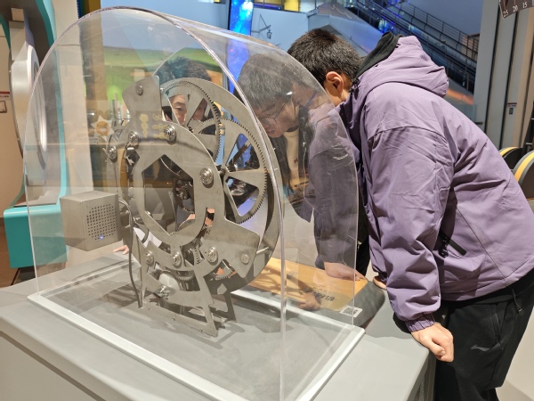 支部成员在青岛西海岸科技馆北门集合后有序入场,并开启了活动第一阶段的自由参观。在活动的第一阶段,支部成员参观人工智能、航天航空、生命科学等核心展区,直观感受前沿科技的魅力与应用价值。在参观过程中,支部成员积极与展厅讲解员互动,踊跃提问,并主动操作体验各类展陈设施,将理论知识与实践观察相结合。部分支部成员结合自身专业特点,围绕展品所涉及的专业原理展开了深入探讨,并带动其他支部成员参与讨论当中,形成了浓厚的现场研讨氛围。